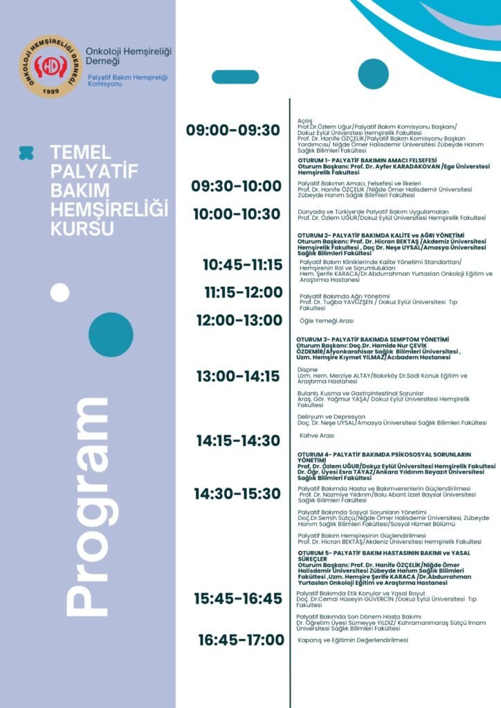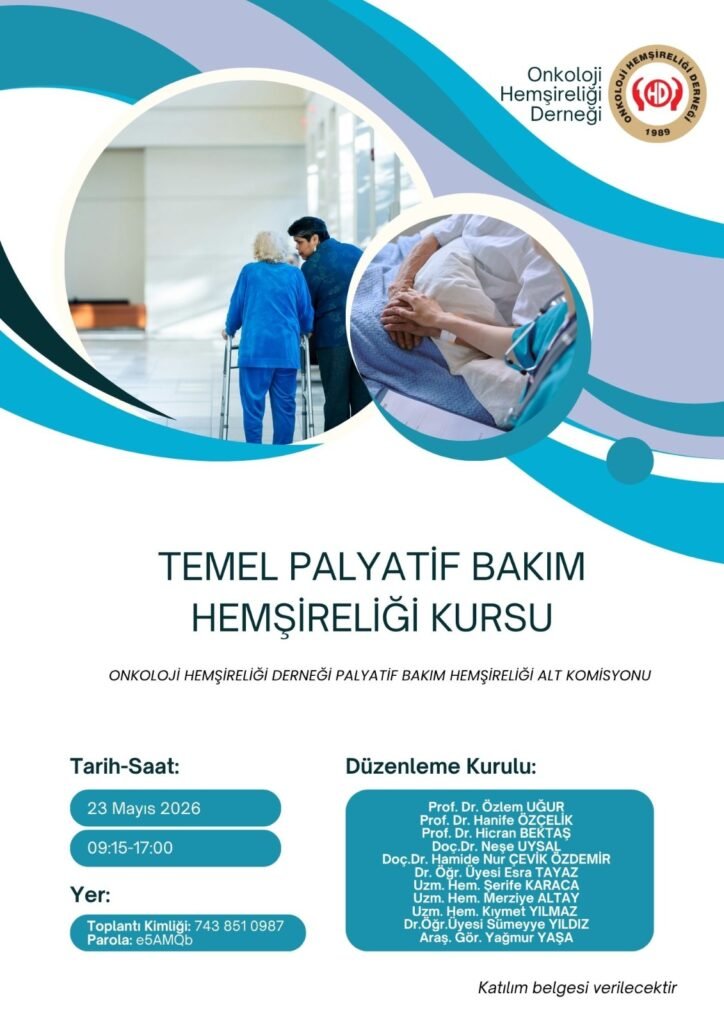 Diğer, Kurslar, Toplantılar Temel Palyatif Bakım Hemşireliği Kursu 17 saat önce / FacebookXRedditPinterestEmailGoogle+LinkedInWhatsAppStumbleUponvKontakte 23.05.2026 @ 09.15- 17.00 Zoom ID: 826 6945 0992 Parola: 607701 Toplantıya katıl